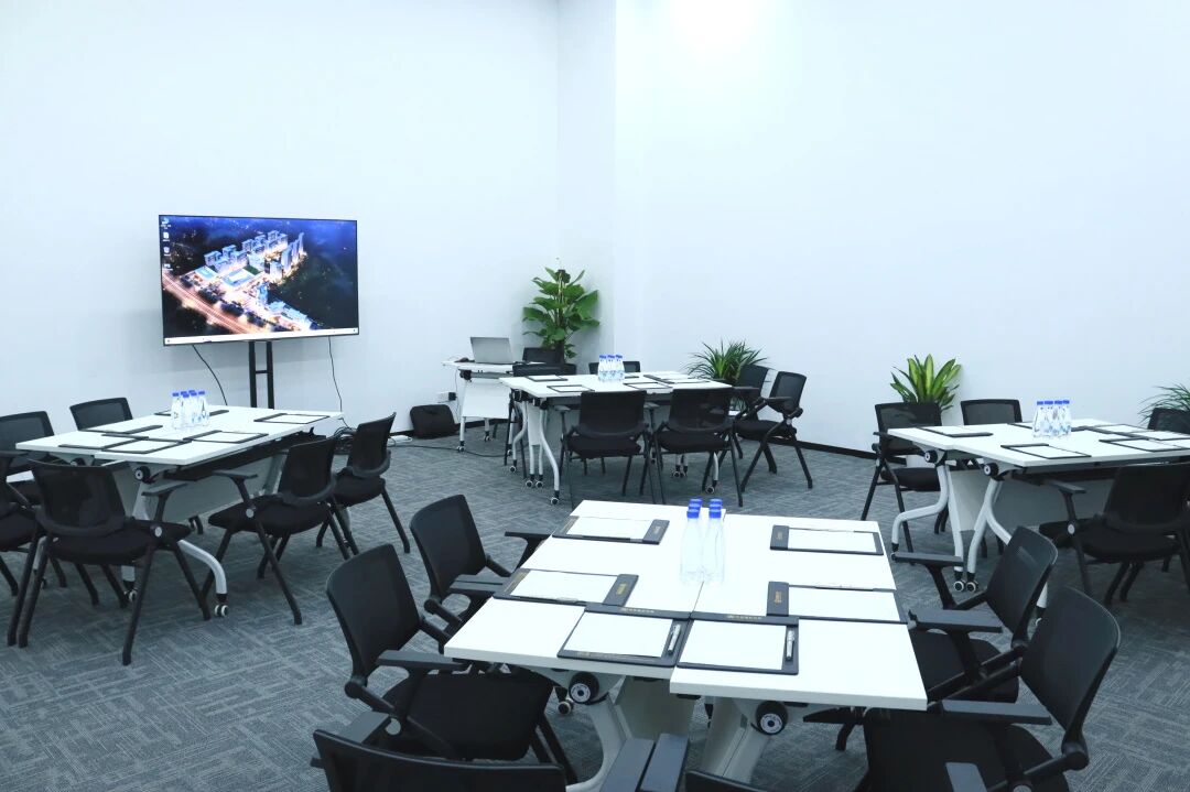 不同会议要换不同场地?园区商务会议室直接“一锅端”!这里主打“全地形适配”:想搞头脑风暴?圆环形布局促交流;要做项目汇报?剧院式显专业;需要小组讨论?鱼骨式排列超方便。