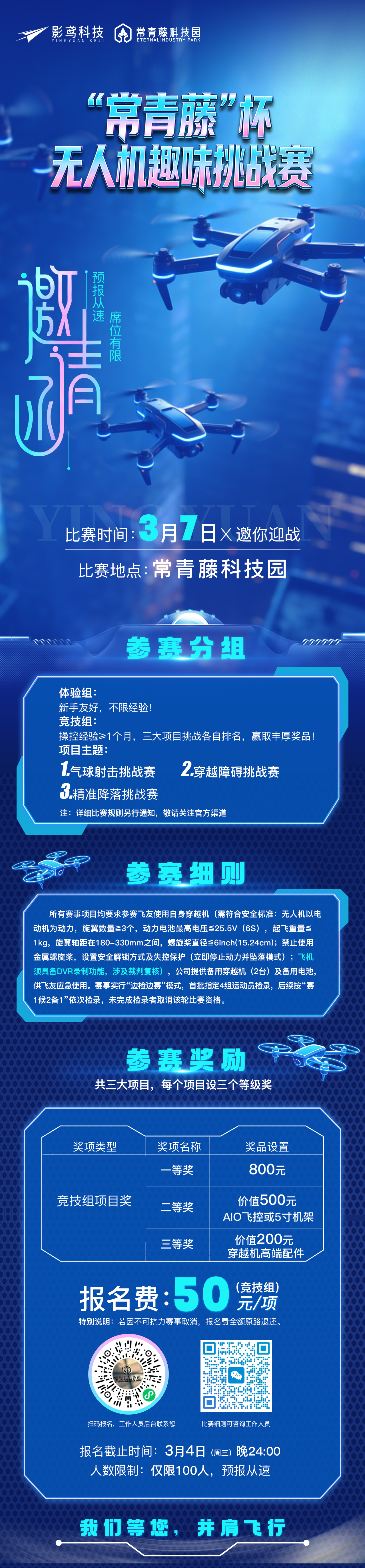 青藤资讯丨“常青藤” 杯无人机趣味挑战赛报名火热进行中!体验组无门槛,竞技组赢大奖,3月7日等您来“飞”→