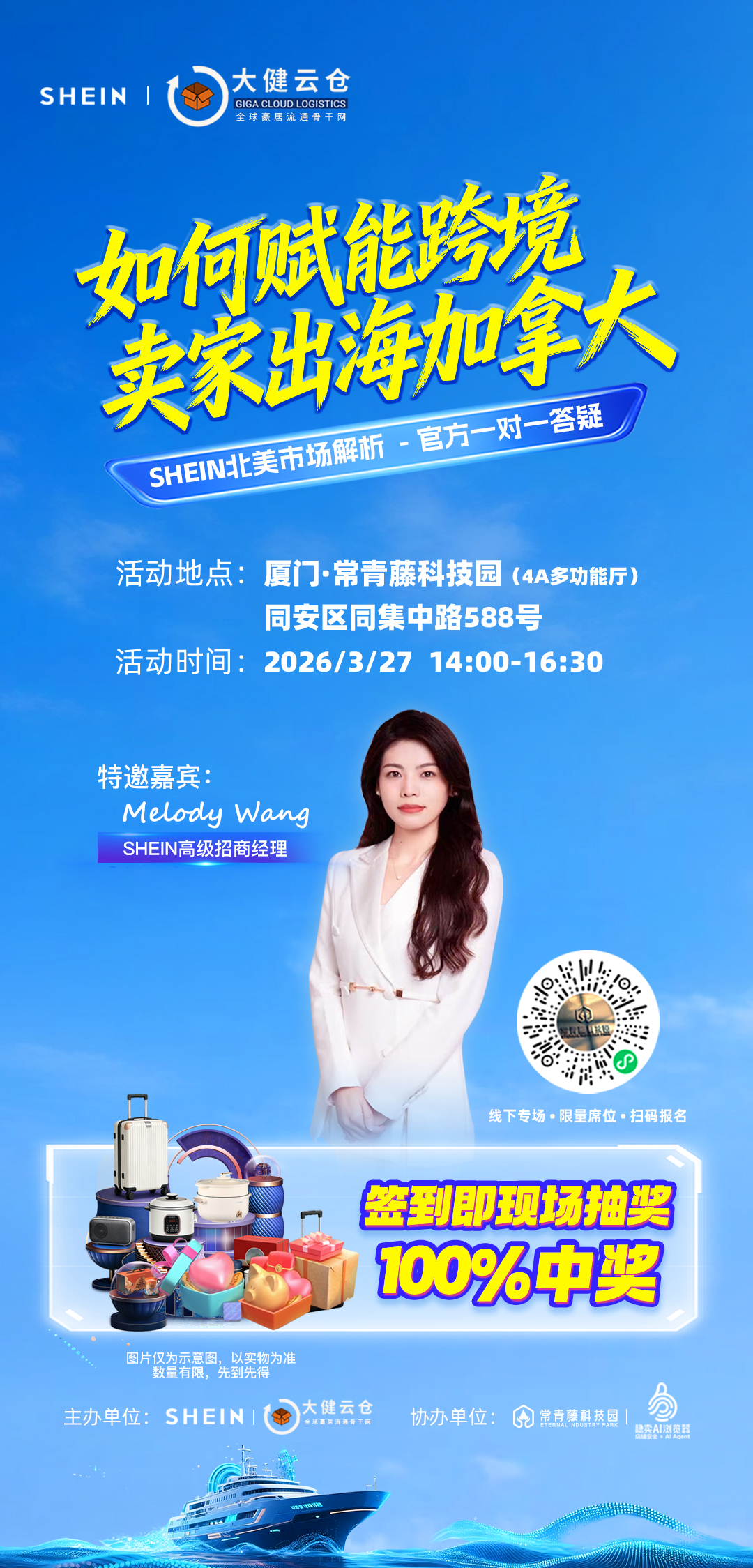 青藤资讯丨SHEIN×大健云仓线下赋能专场,官方经理面对面答疑,参与活动100%中奖,3.27相约常青藤→