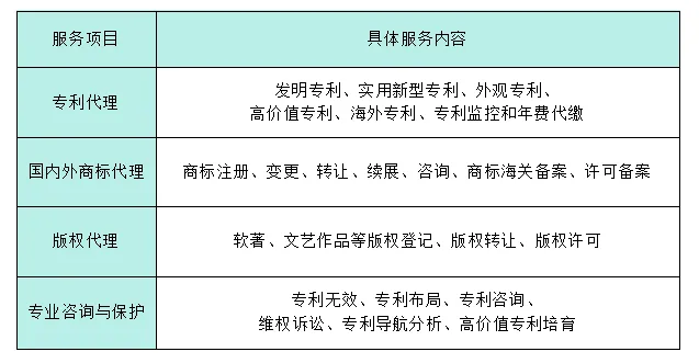 青藤超级企业服务中心知识产权代理部设有国知局批准成立的知识产权事务所,拥有专业的代理服务团队,从企业发展规划、产品开发保护等实际需求出发,提供国内外专利、商标、版权代理以及专利咨询与保护等服务,协助客户企业强化知识产权保护与应用。